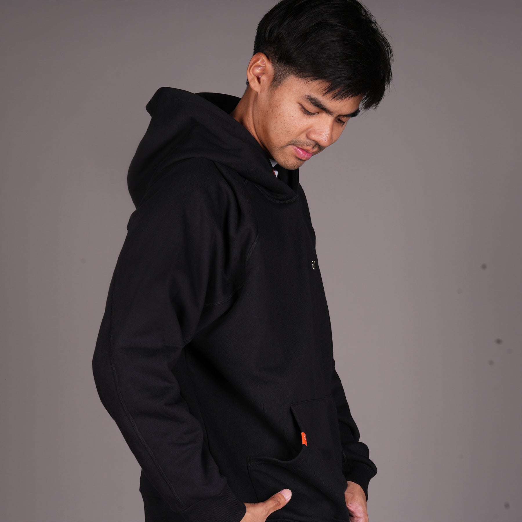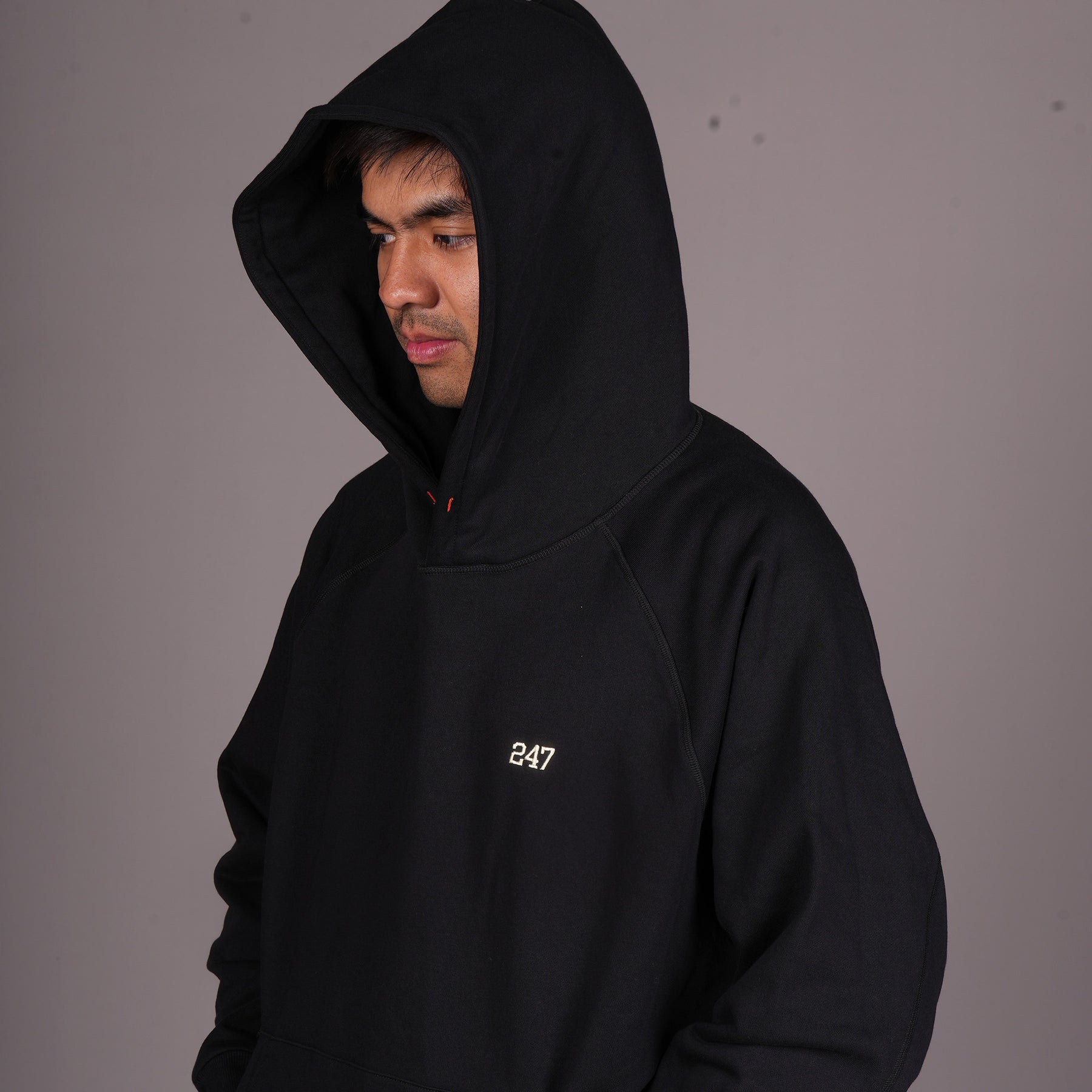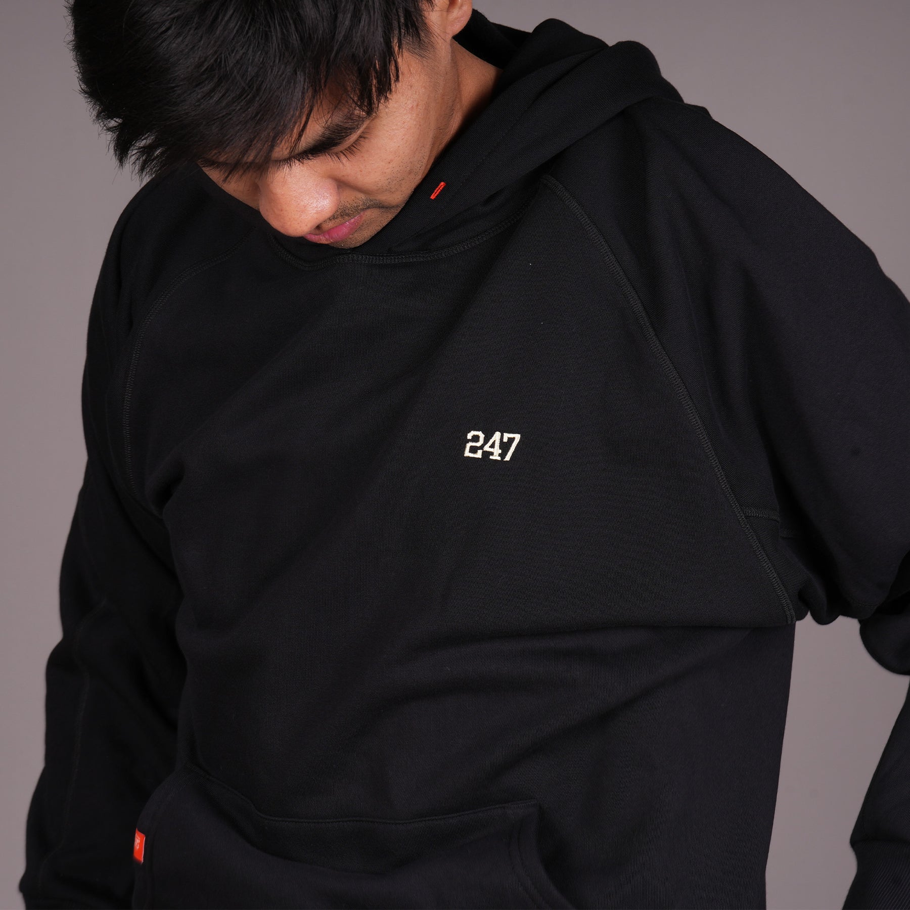 The French Terry fleece structure features smooth outer surfaces with looped backing for comfort and breathability.